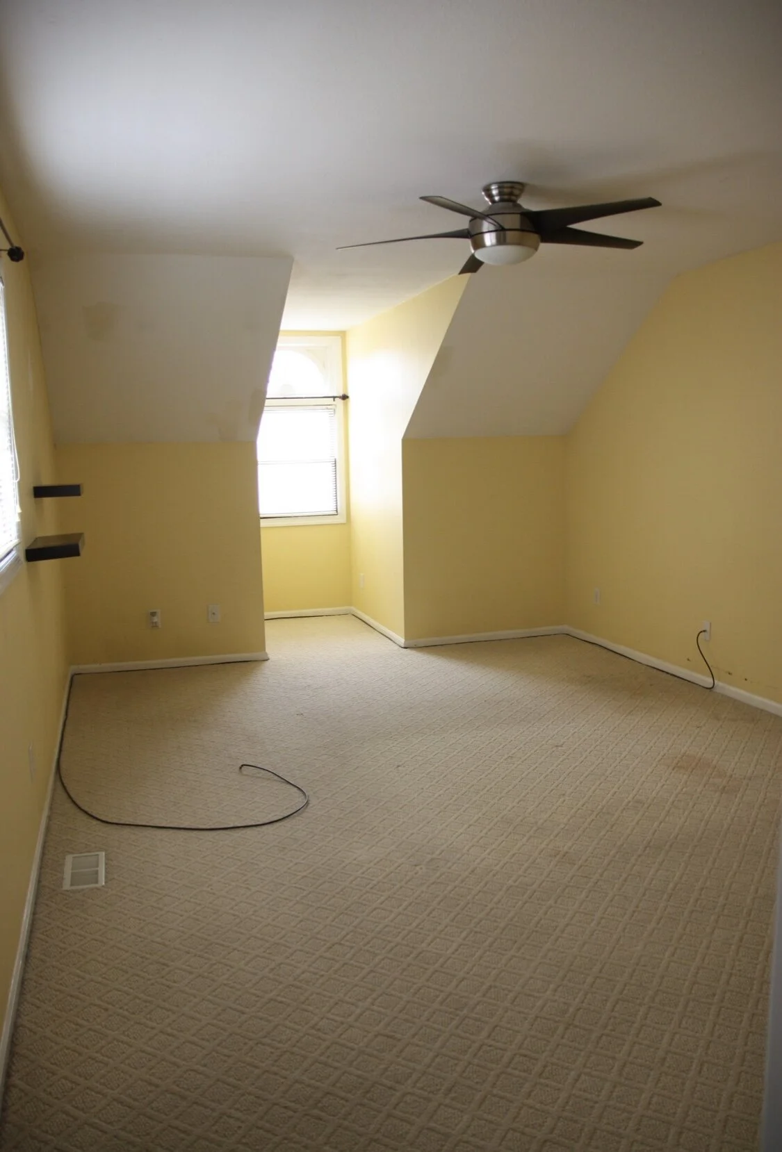 Here are a few mid reno photos. The white paint made such a big difference in this space, and helped the 8ft ceilings to feel higher, especially near the dormer window where they slope down into the knee walls.