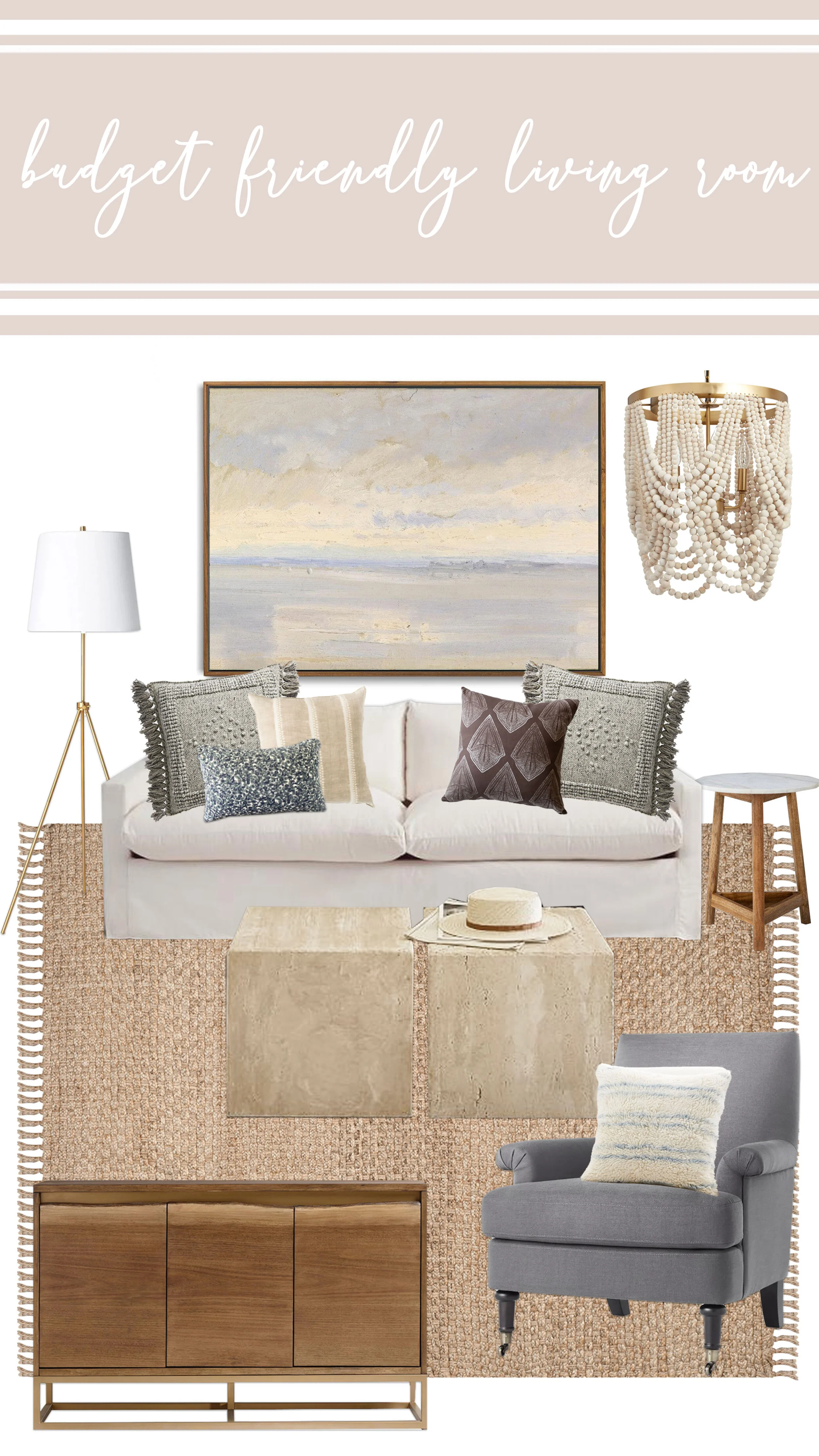 Today I’m sharing a budget friendly living room design. I haven’t done an affordable full room design for a while, and I know a lot of you enjoy when I share boards like this, so I’m going to make an effort to share more affordable whole room designs in the future!