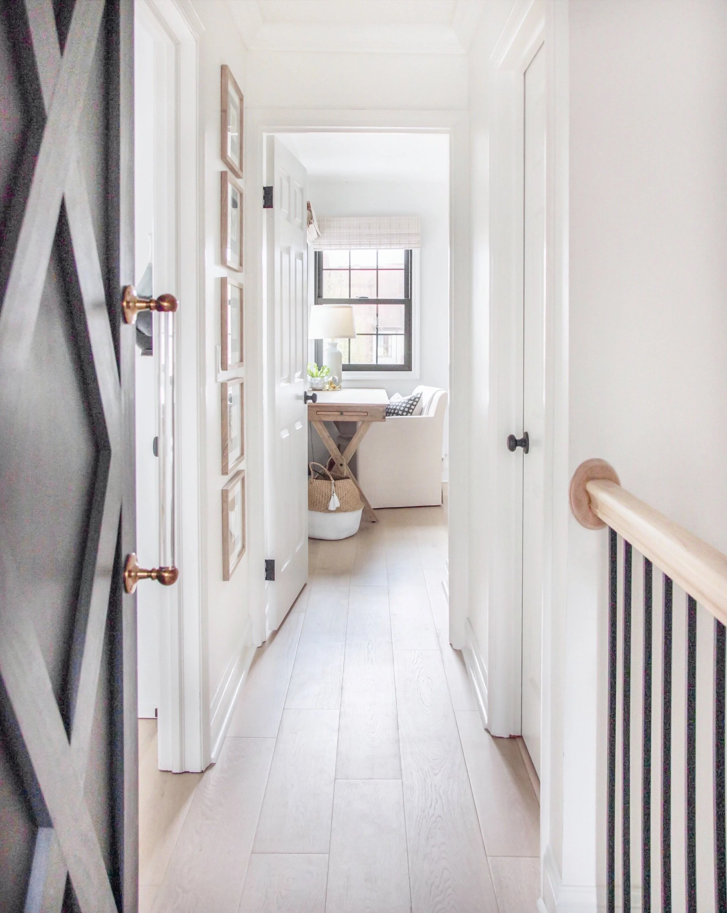 Paint: Sherwin Williams Extra White (wall, trim, ceiling) Benjamin Moore Cheating Heart (Barn Door)